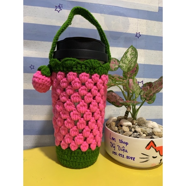 Túi Ly Giữ Nhiệt Hồng Dâu free ship
